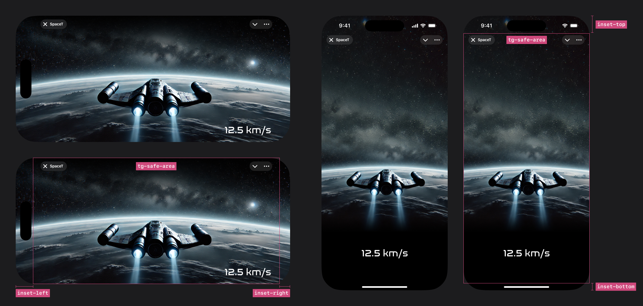 | contentSafeAreaInset NEW | ContentSafeAreaInset | An object representing the safe area for displaying content within the app, free from overlapping Telegram UI elements. |