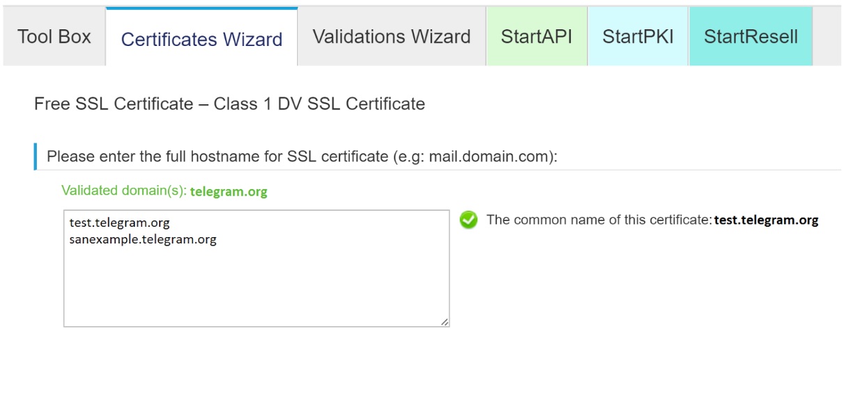 The common name (CN) of your certificate (self-signed or verified) has to match the domain name where your bot is hosted. You may also use a subject alternative name (SAN), that matches the domain for your webhook. Server Name Indication (SNI)-routing is supported. If you're using a self-signed certificate, you may use the IP as a CN, instead of the domain name. A certificate, where do I get one, and how?